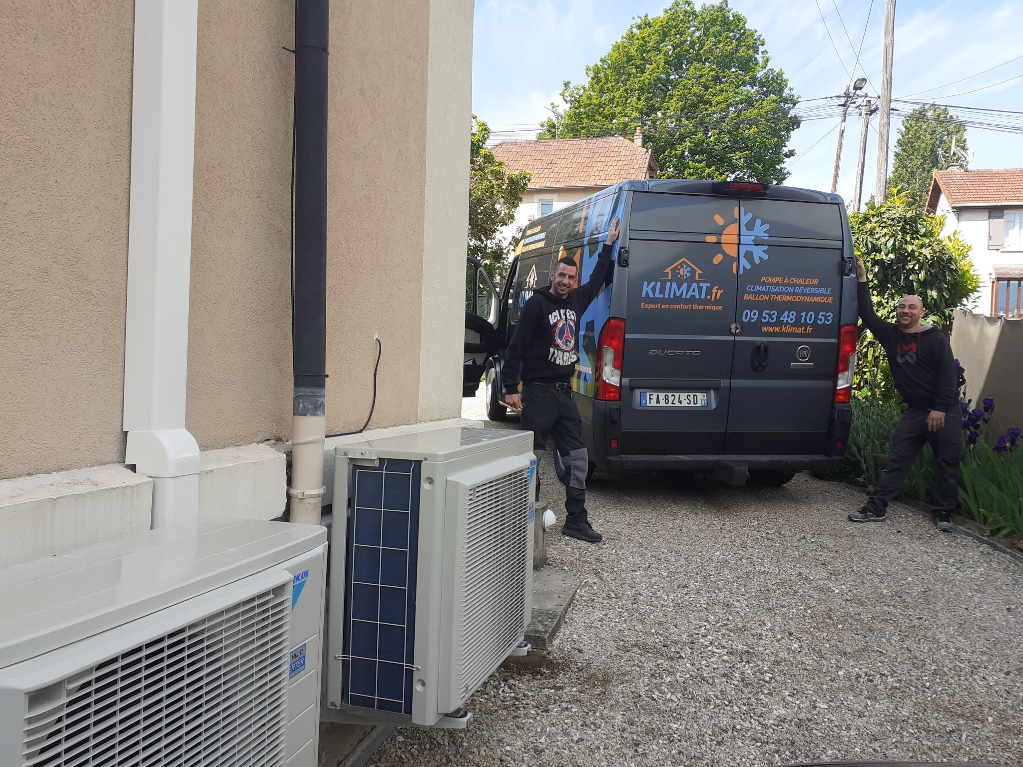Posté le 12/10/2021 à 17:32"Je recommande vivement cette société.Nous avons fait faire des devis par plusieurs sociétés et Klimat a été celle qui nous a le mieux conseiller et donc le devis était le plus compétitif. Une équipe de techniciens très compétante qui est intervenue très rapidement pour l’installation.Leur travail est très soigné et propre. L’intervention à durée une journée et demi pour la pose de deux groupes et cinq splits. Je recommende cette société très professionnelle !!!"